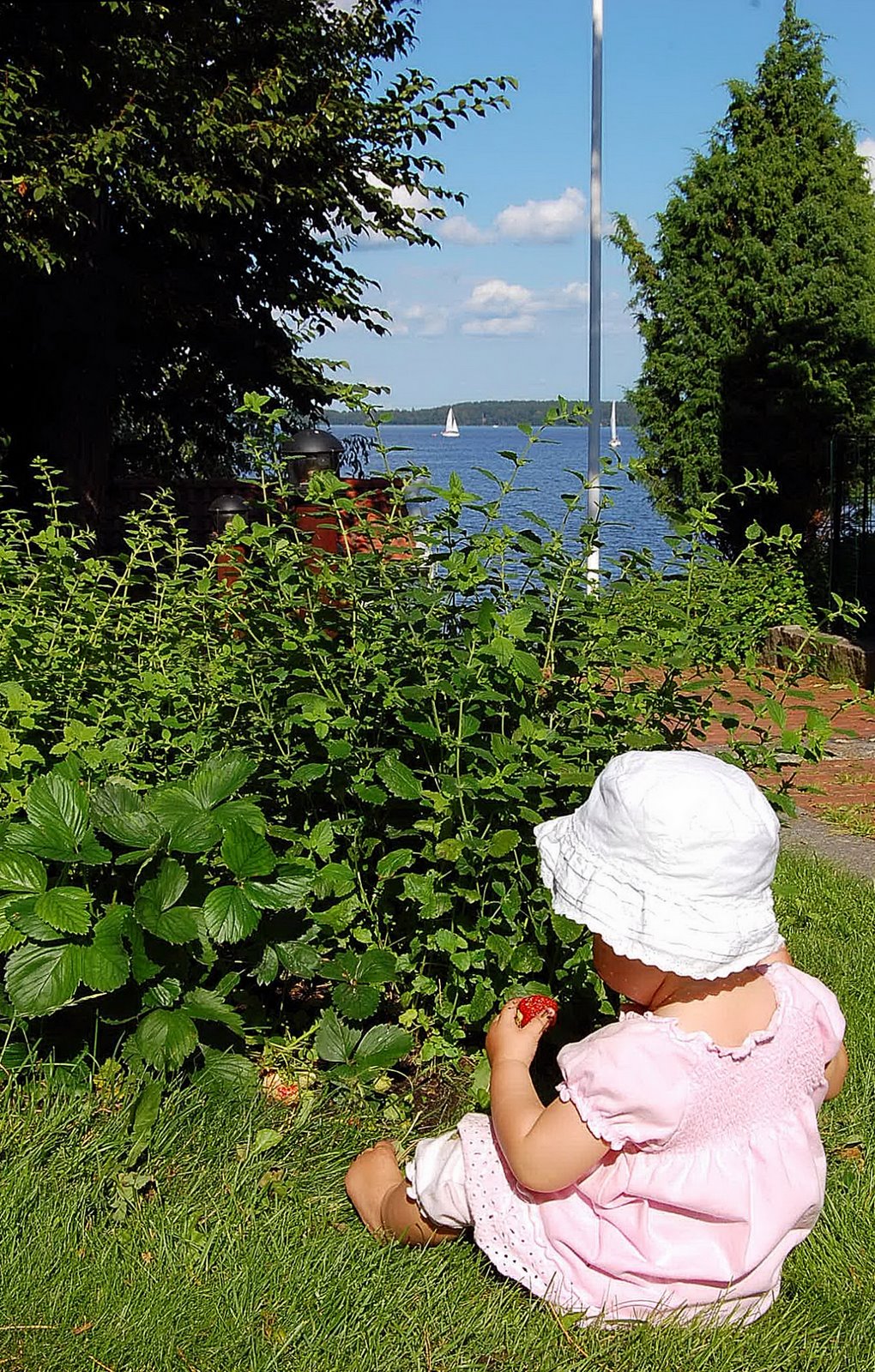 Behöver jag säga att den fina klänningen, som lillan fått av moster, inte ser riktigt likadan ut nu som den gjorde innan!