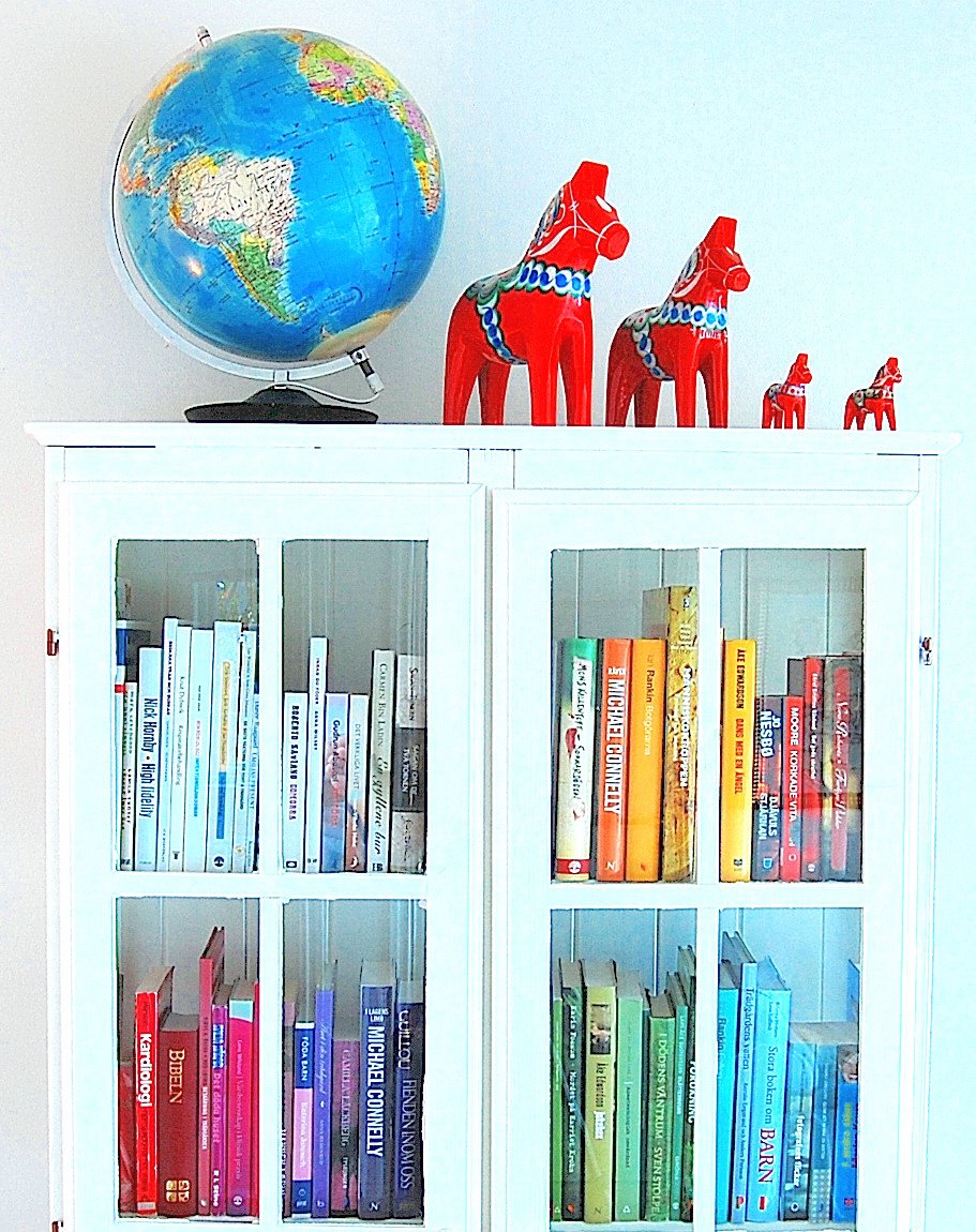 Jättesnyggt! Gillar hela kombinationen och färgerna med böcker, jordglob och dalahästar 🙂