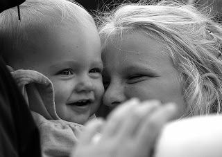 Lillan är verkligen förtjust i sina systrar! De bor hos oss var annan vecka, och när de är här lever hon verkligen upp!