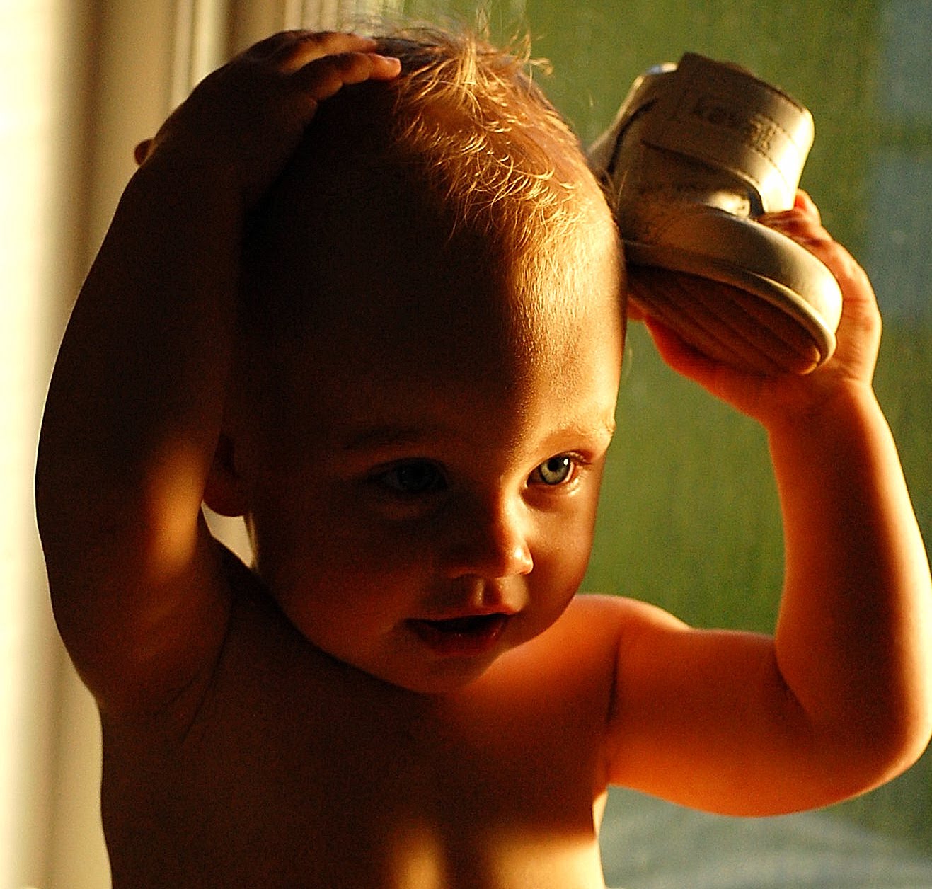Nybadad ljuvlig unge!
