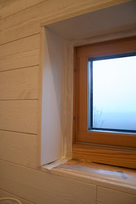 Wow, vilket fint fönster:-)Det blev riktigt snyggt färdigt ska du tro. Bara tre mdf-skivor som målats och slipats lite lätt på de yttre kanterna, sen satte jag en tunn, fin latexfog runt om, både inne mot fönstret och utanför. Sen målade jag över fogen också, den sista strykningen. Men visst, det var lite pilligt.Gud vad mysigt och juligt ni har fått det. Idag putsar jag fönstren. På insidan. Jonas stod på stege och tog det stora fönsterpartiet på utsidan i går, så nu ser vi ut;-)Ska plocka fram lite julpynt idag, jag också (med betoning på lite).Ha en härlig söndag!