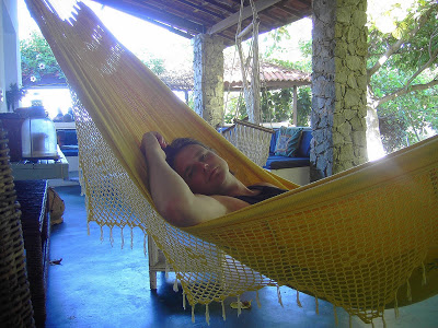 Eller varför inte en tupplur i en av de tre traditionella Brasilianska hängmattorna! Hoppsan där kom vist älsklingen med på ett hörn! Får se om det blir protester nu!