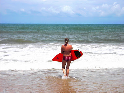 Efter några lugnande ord från henne var det bara att ge sig i kast med vågorna igen!