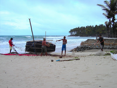 Inte ens de här killarna syntes till med sina fiskebåtar och nät, vilket resulterade i att vi vid ett par tillfällen inte fick någon kvällsmat! Det fanns helt enkelt inte något att handla i affären för kvinnan som var anställd för att laga mat i ”vårt” hus! Som tur var fanns det en fransk (!) restaurang i byn som vi besökte var och varannan kväll. Den Brasilianska kvinnans mat var god men inte så varierande…