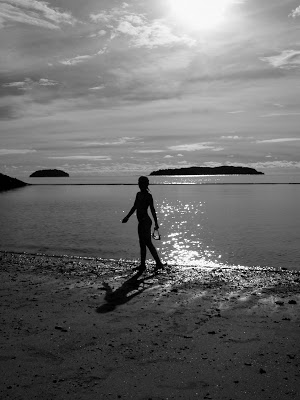 Jo, absolut håller den för att sitta på en vägg! Jag tycker den är jättevacker!:-) Sådana bilder gör sig fint i svart-vitt, och just kombinationen av ljuset på himlen, blänket i vattnet och tjejens siluett och tydliga skugga gör den intressant. Många fina detaljer som träder fram och härliga kontraster.:-)Fint fotat!Ha en fortsatt skön och trevlig helg! /Kram Karin