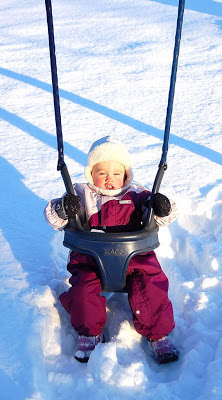 Vi promenerade bort till lekparken för att gunga lite, men hopplahoppla vad mycket snö det var, blev inte mycket gunga av när snön räckte ända upp till gungsitsen!