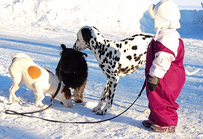 Lilla, Gunborg (ja, det är vår hund) och jag, har varit ute hela eftermiddagen och lekt i snön! Det var så mysigt, och så enkelt nu när hon går själv! Skönt att slippa släpa på en trist vagn!