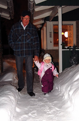 Måste skotta mer och då måste vovven in eftersom hon bara attackerar snöskottaren annars, och vad händer då? Lillan bryterihop och gallskriker när jag tar kopplet ifrån henne!