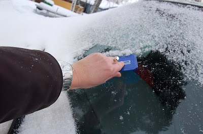 Vantarna är kvar där inne och billen är helt igensnöad, orkar inte hämta vantar, skrapar snö barhänt och håller på att frysa ihjäl!