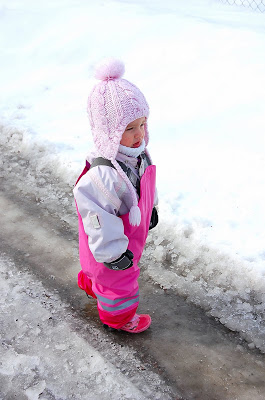 Våren är så sakteliga på väg, men det är en del snö och is som skall bort och det kommer att bli ganska blött! Bra kläder känns verkligen som A och O när man skall vara ute och leka i slask!