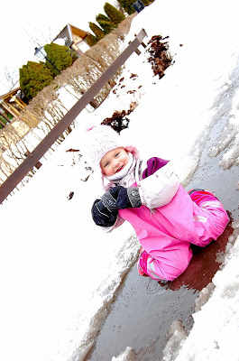 Idag hade vi en hemmadag med lek ute i den snön som finns kvar! Lillan är ett riktigt litet ”vattendjur”! Spelar ingen roll om det är badkaret eller en vattenpöl, allt skall det lekas och plaskas i! My Good vad jag längtar till snön försvinner…