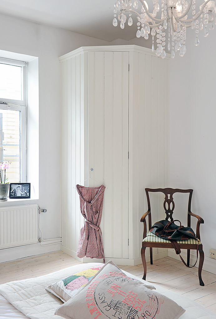 Kolla den superfina garderoben som är platsbyggd i ett hörn i sovrummet! Lite annat än garderober från det stora varuhuset… Verkar inte vara så svår att bygga själv faktiskt!