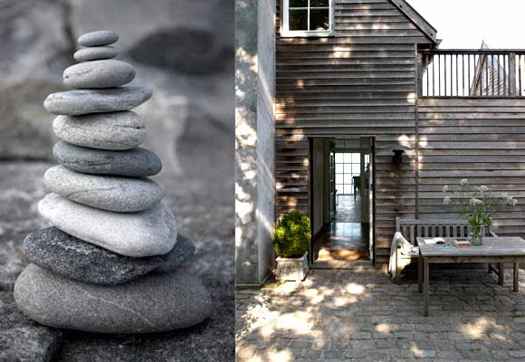 Snyggt med den grå fasaden, möblerna och stenbeläggningen!