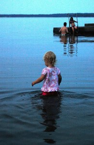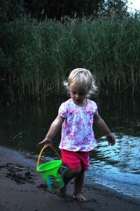Så modig din lille prinsesse er. Bade alene er nok litt skummelt når man er så liten;) Utrolig fint det første bildet der hvor de to jentene leier hånd sammen:) Helt herlig stemningsbildet:))Kos deg masse i solen. Her har det vært regnvær, lyn og torden igår og idag..men nå begynner solen å komme igjen. Håper det blir deilig og varmt så vi kan bade, dra på sjøen med båten og grille til middag hver eneste dag…hele resten av sommeren !! :))God klem fra Line