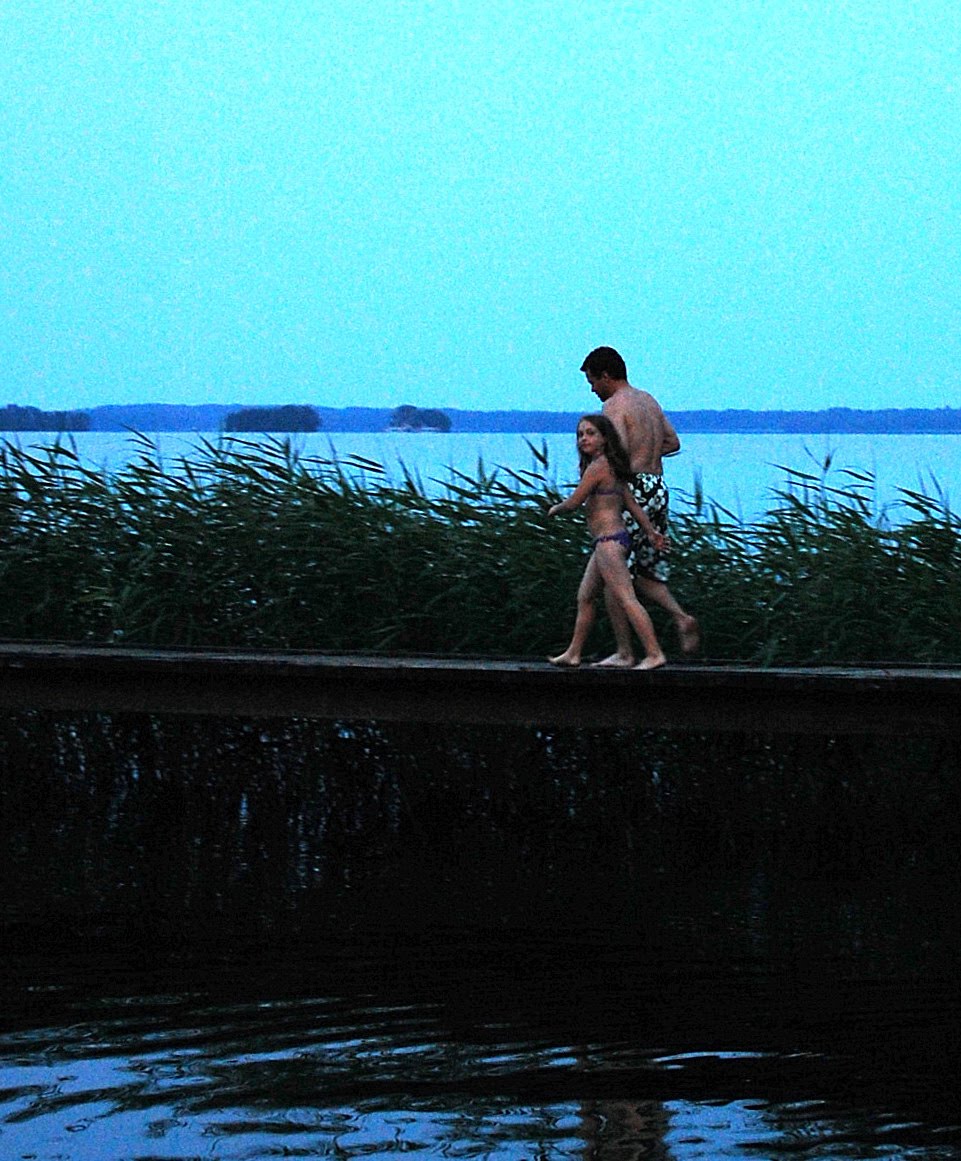 Hennes man har en dotter på 10 år som vår lilla ”Tildis” blivit mycket förtjust i. Efter middagen i kväll vaknade plötsligt vår lilla sessa och ville inte somna om. Istället blev det en tur till stranden och ett kvällsdopp för barnen och våra gäster.