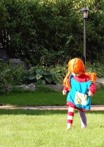 Sen tur till mormor och morfar fick det bli igår kväll. Morfar som är en ”handy man” fixade de ogängade skruvhålen i sängen, lätt som en plätt! Lillan ville gärna visa sin fina Pippidräkt som hon fick av kusinerna i födelsedagspresent!