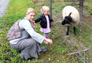 Lillan är otroligt road av djur, så det naturliga valet för dagens utflykt var Kungsbyns Zoo! Först god lunch i restaurangen, sen gav vi oss i kast med getter, hönor, kaniner, vildsvin, älgar och det här hungriga fåret!