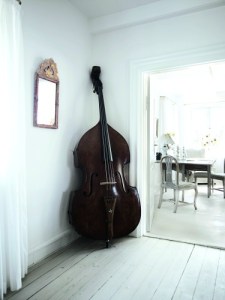 Visst känns det som ett levande hem när man har instrument? Vi är heeelt omusikaliska, så här lär det inte flytta in något instrument. Min svåger är musiklärare och de har en vacker flygel i sitt vardagsrum, så vackert!