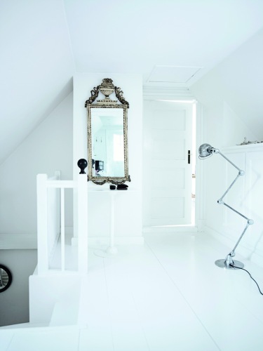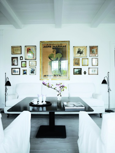 Härlig känsla med tavelväggen som bryter mot det svartvita!