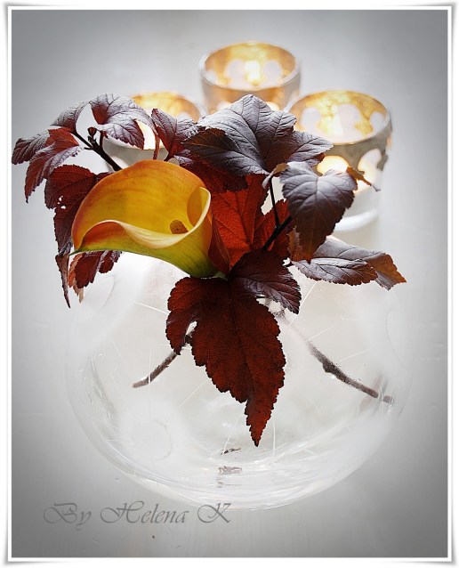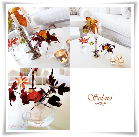 Nåväl, det är inte annat att göra än att följa årstidernas skiftningar och göra det bästa av varje säsong. Igår plockade jag in lite höstlöv och fixade lite höstmysigt på borden.