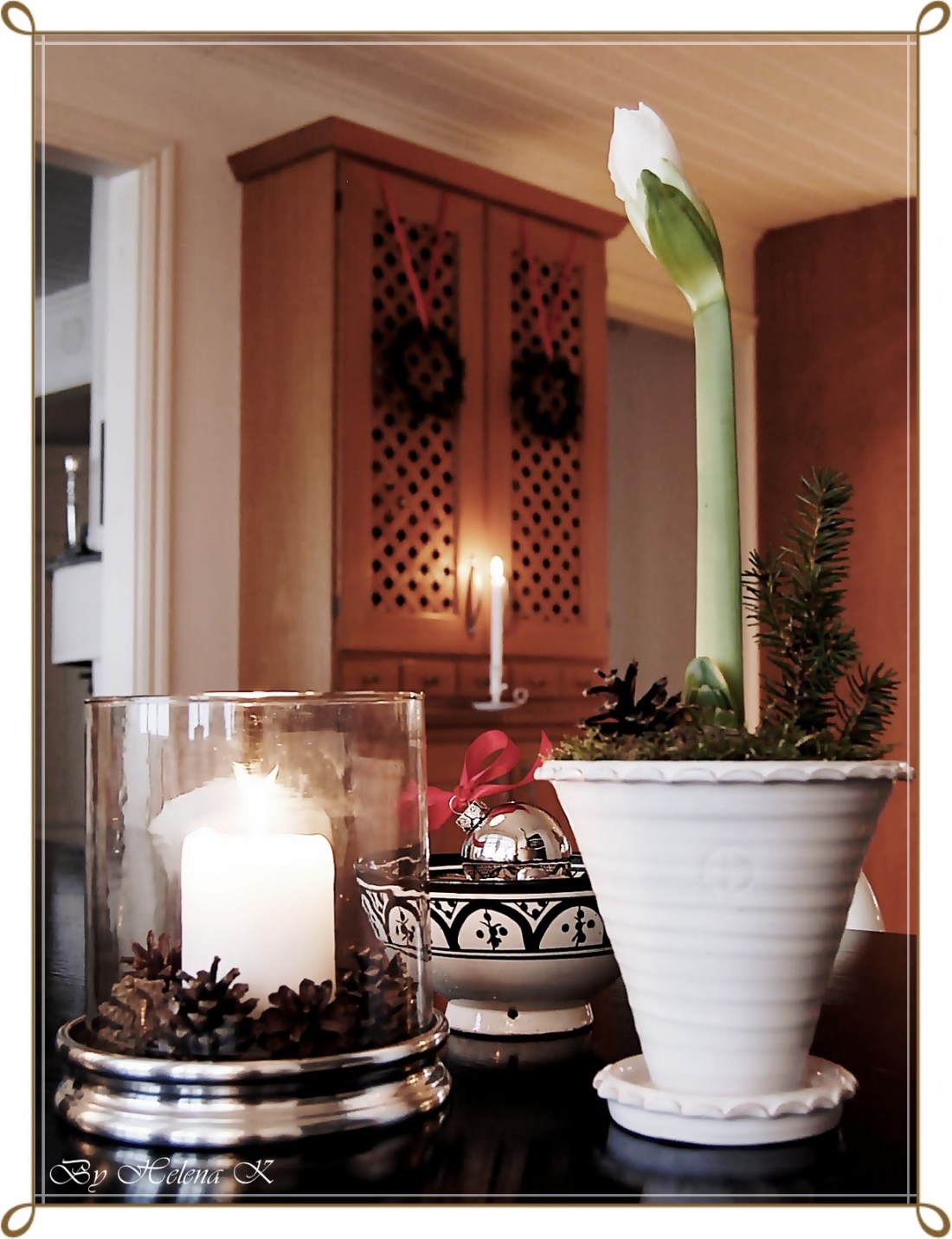 Ta en gran det tillhör julen;)Tack för tippset med kottarna jag har exakt den ljuslyktan fast större och det ser så tomt ut när det inte är något där i. Föresten undrar hur det ser ut om man slänger ner skum tomtar? ja jag ska prova. Ha en bra helg kram Sussi.