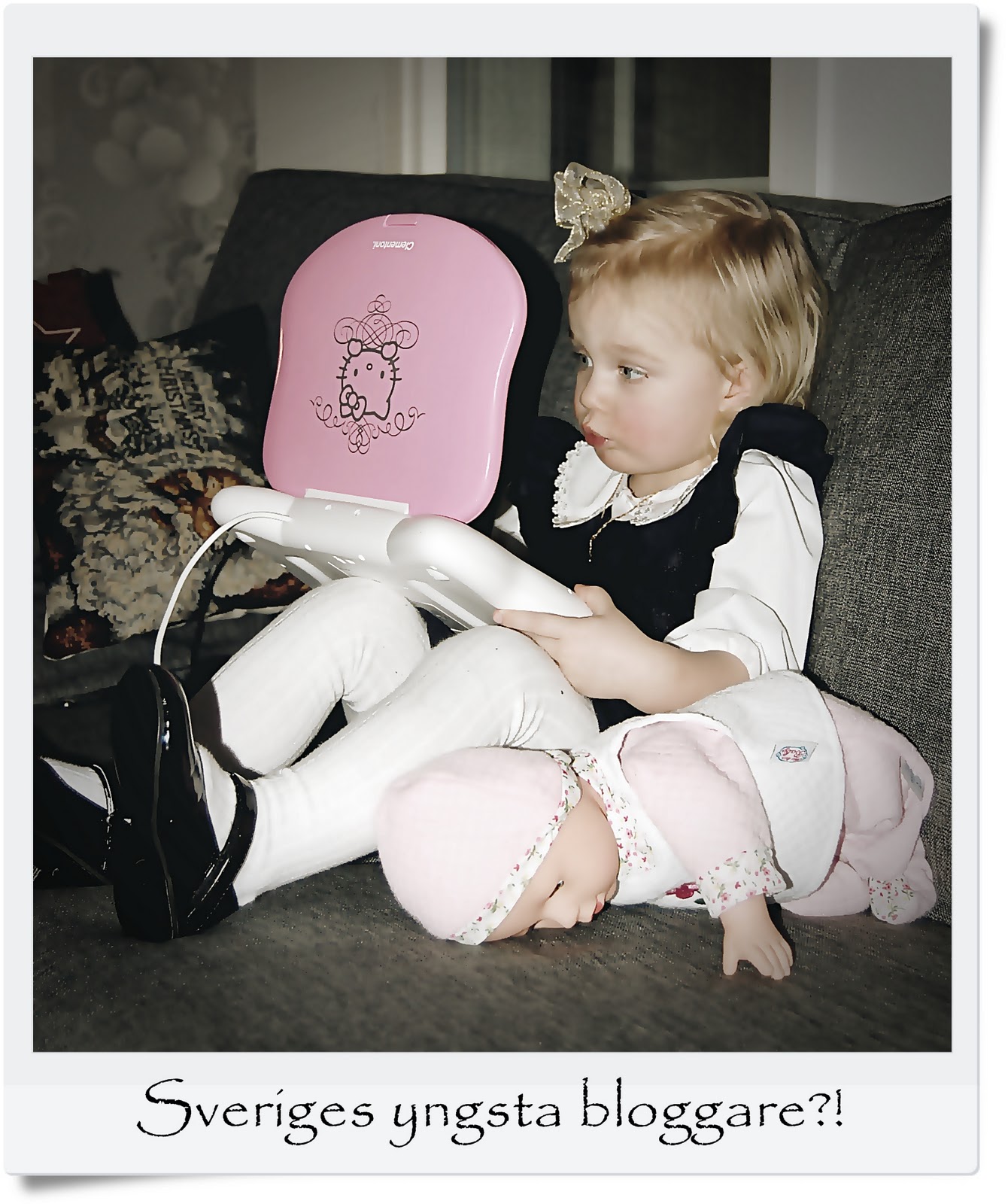 Läste om dottern till den där Schuttermankvinnan, hon hade visst börjat blogga 12 år gammal! Men vadå, 12 år är väl inget, kolla Lillan hon är bara 2,5 och vet precis hur man gör!