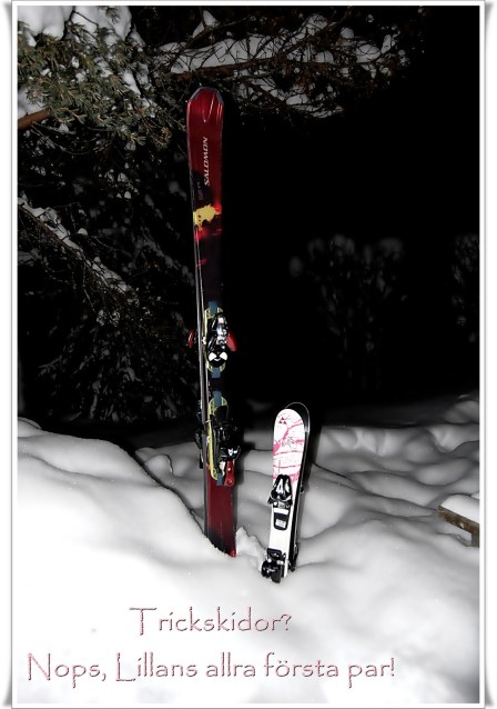 Dagen har tillbringats i backen, och Lillan har gjort debut på slalomskidor, typ världens minsta!