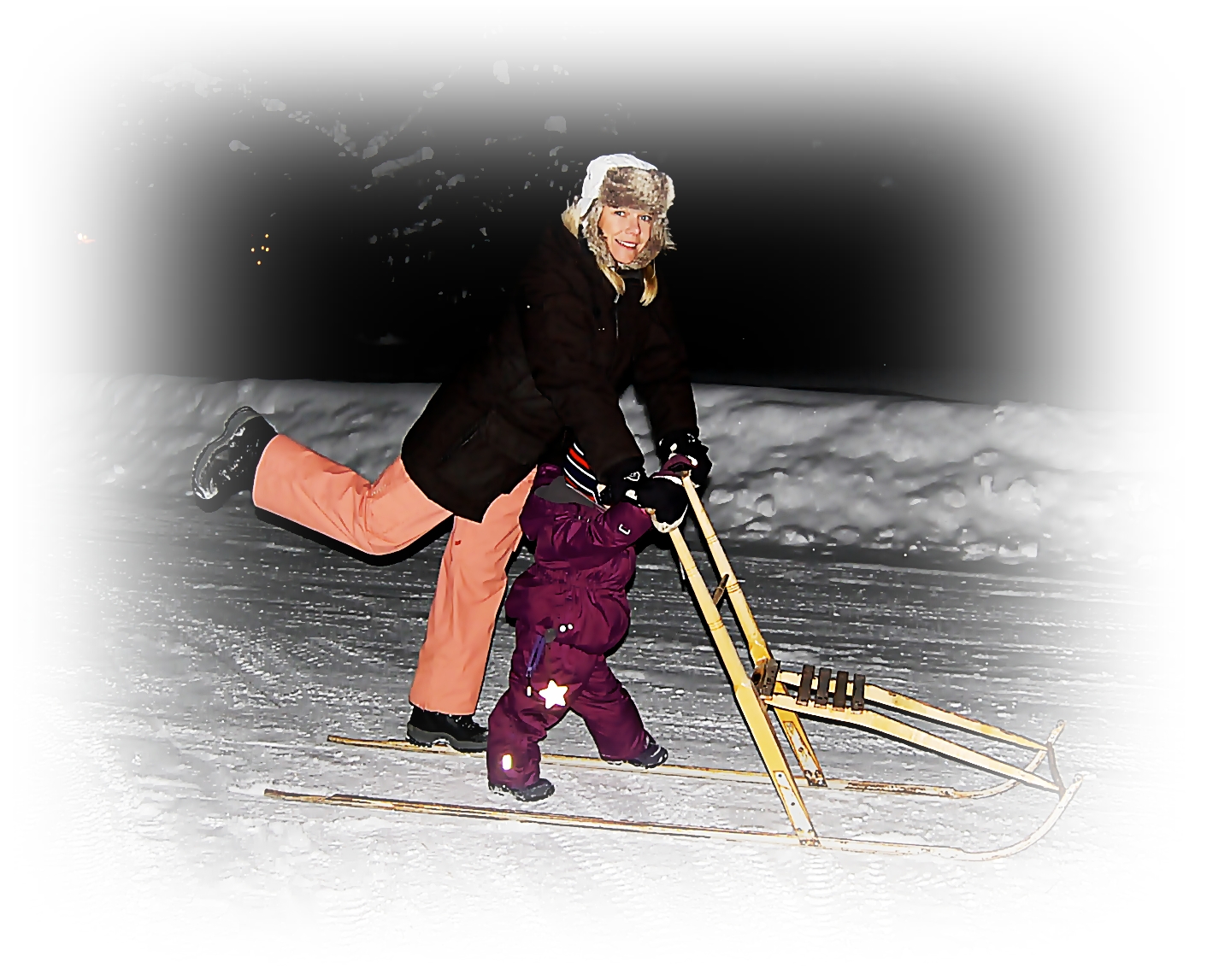 Precis lagom kallt är det just nu, och lite sparkåkning på kvällskvisten passade perfekt. Ända tills Lillan satt där fram, och jag körde på en sten, och ja ni kan ju förstå hur det hela slutade…