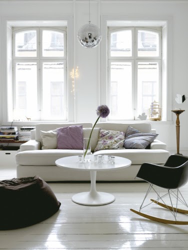 Härliga bilder! Jag gillar att det går i svart/vitt med mjuka fina färger, och en del trä, som bryter av. Inte så perfekt arrangerat utan med stor dos personlighet. Gillar! Det är så jag tänker när jag inreder/Greta
