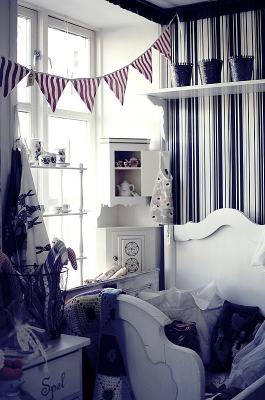 Vilken mysig butik, älskar såna! Men tapeten ser ut som streckkod, hihi!! ;)Kram/ Greta