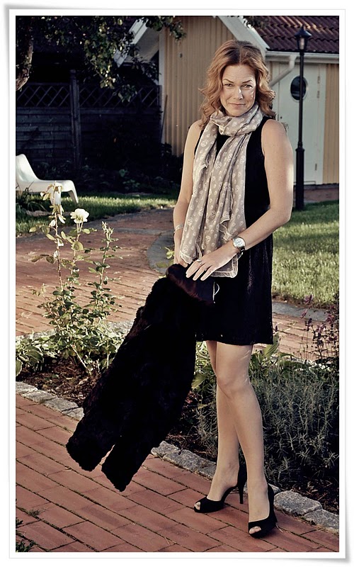 För någon vecka sedan var jag ute på representationsgalej med älsklingen, och då blev det klackar och clutch (festligt namn) och hela baletten. Köpte en enkel svart klänning i genombruten spets, med underklänning, på Tullhuset. Svart pälsjacka från MQ och en silkessjal, också den från Tullhuset,