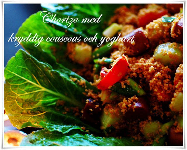 3. Häll i den torra couscousen och vattnet, rör om och ställ åt sidan.