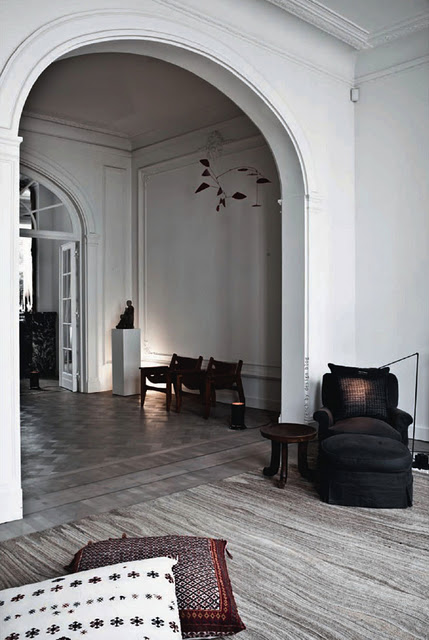 Nu far vi strax söder över och jag bjussar på några fina bilder, som jag nyss hittade, så länge. Jag tittade på bilderna och kunde snart konstatera att, tänk så mycket själva huset, väggarna, fönstren, taken, golven, listerna och annan ”fast inredning” betyder för känslan och så lite möbler och grejer man behöver för att få till det när själva ”skalet” är vackert. Min fråga blir då, varför lägger vi inte mer krut och pengar på våra hus och  mindre pengar på möbler och prylar?