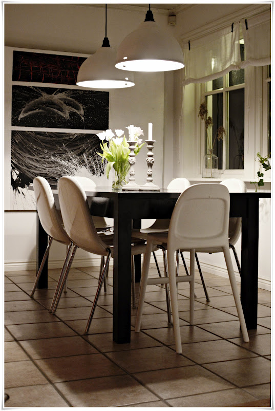 Hej Helena!Först måste jag tacka för en fantastisk fin inspirationsblogg! Helt ny hos dig, och jag gillar verkligen din stil!Har funderat lite på dina "grislampor" som du har ovanför matsalsbordet, är de väldigt bländande när man sitter vid bordet? Hur högt ska en lampa hänga? Har letat som en tok efter lampor, allt ska ju stämma, och just hela bländ-grejen är jätteviktig då vi nu har en riktigt dålig lampa som bländar. Hoppas du har tid att svara mig! Vänligen Linneth