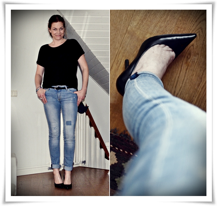 Snygga jeans och skor. Vet inte om jag skulle kunna gå i så spetsiga. Hur går det med tårna efter ett tag??? Men snyggt är det.Eva