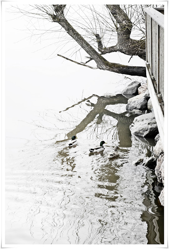 Några änder guppar vid strandkanten, de är nästan tama och blir inte rädda när jag kommer med min kamera. Vi brukar mata dem, Lillan och jag!