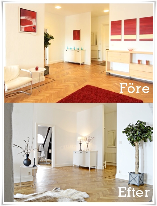 Här är i alla fall några före- och efter-bilder från en lägenhet som jag gjorde i vintras, för er som är lite nyfikna på hur jag jobbar. Jag får ganska många mail om frågor på just det.