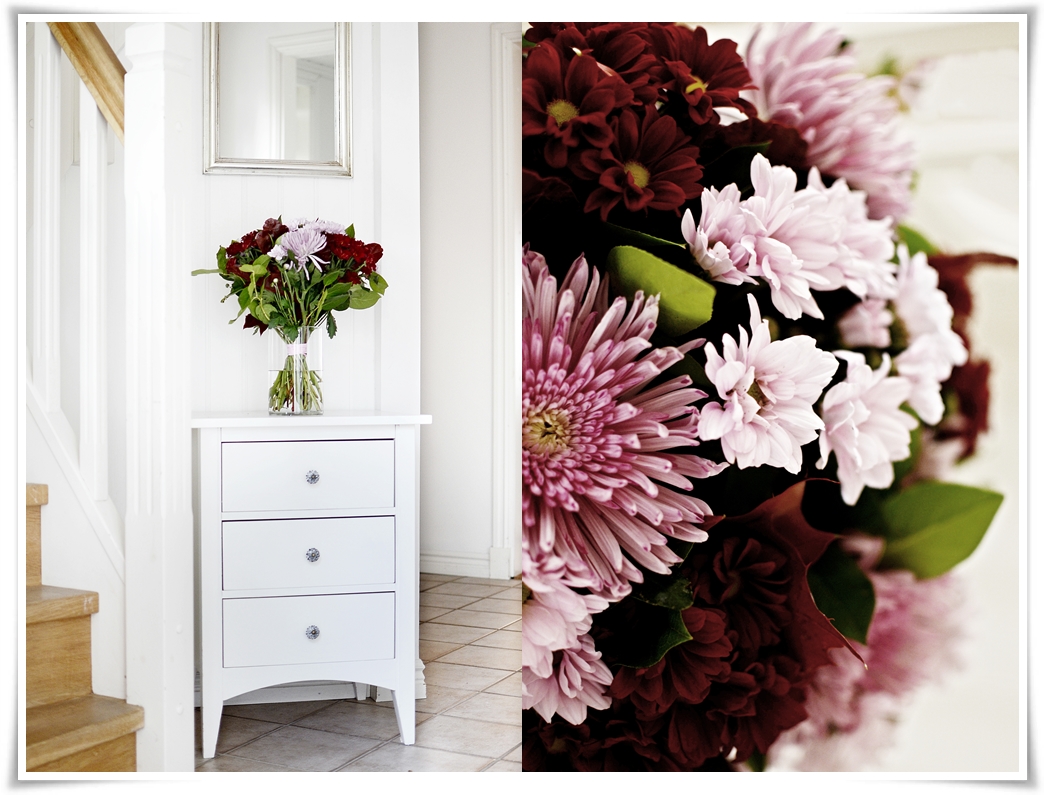 Lagom till gårdagens fotografering dök det vid vår dörr upp en ljuvlig bukett med blommor, en ”Septemberbukett” från Mästerblomman! Den passade perfekt vid fotograferingen, men mest glädje har den förstås skänkt mig här hemma där den står och lyser upp min tillvaro på den lilla byrån i hallen.