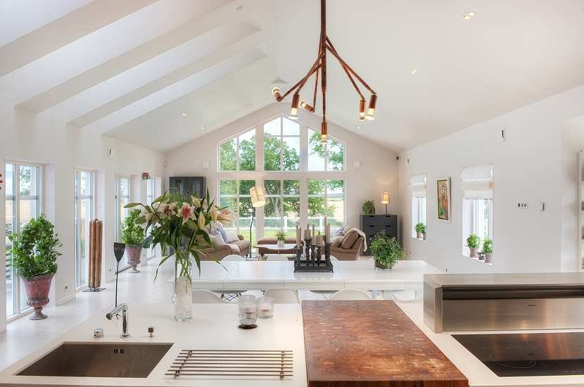 Bilden påminner lite, lite om hur vi kommer att ha det. Gaveln tex är nästan det samma, men vi skall ha mer glas och mindre väggar och spröjs. Bara 0,5 m vägg på vardera sida om ett nästan 5 meter långt och 5,4 meter högt glasparti! Tror att det kommer att bli magnifikt!