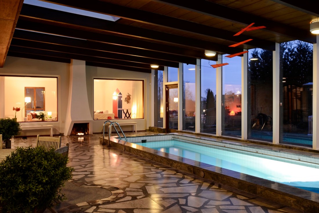 Men hallå, vem vill inte ha en gigantisk pool i varadgsrummet? Simträna lite innan jobbet på morgonen, ja tack! Huset är till salu, så chansen finns för den som kan.