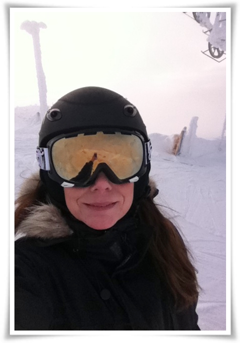 Och här har ni mig. Alltid hjälm i backen, och inte en liten keps som vi hade på 90-talet när jag jobbade i Sälen (städade på bland annat Högis) en vinter. Hur opraktiskt var inte det?!
