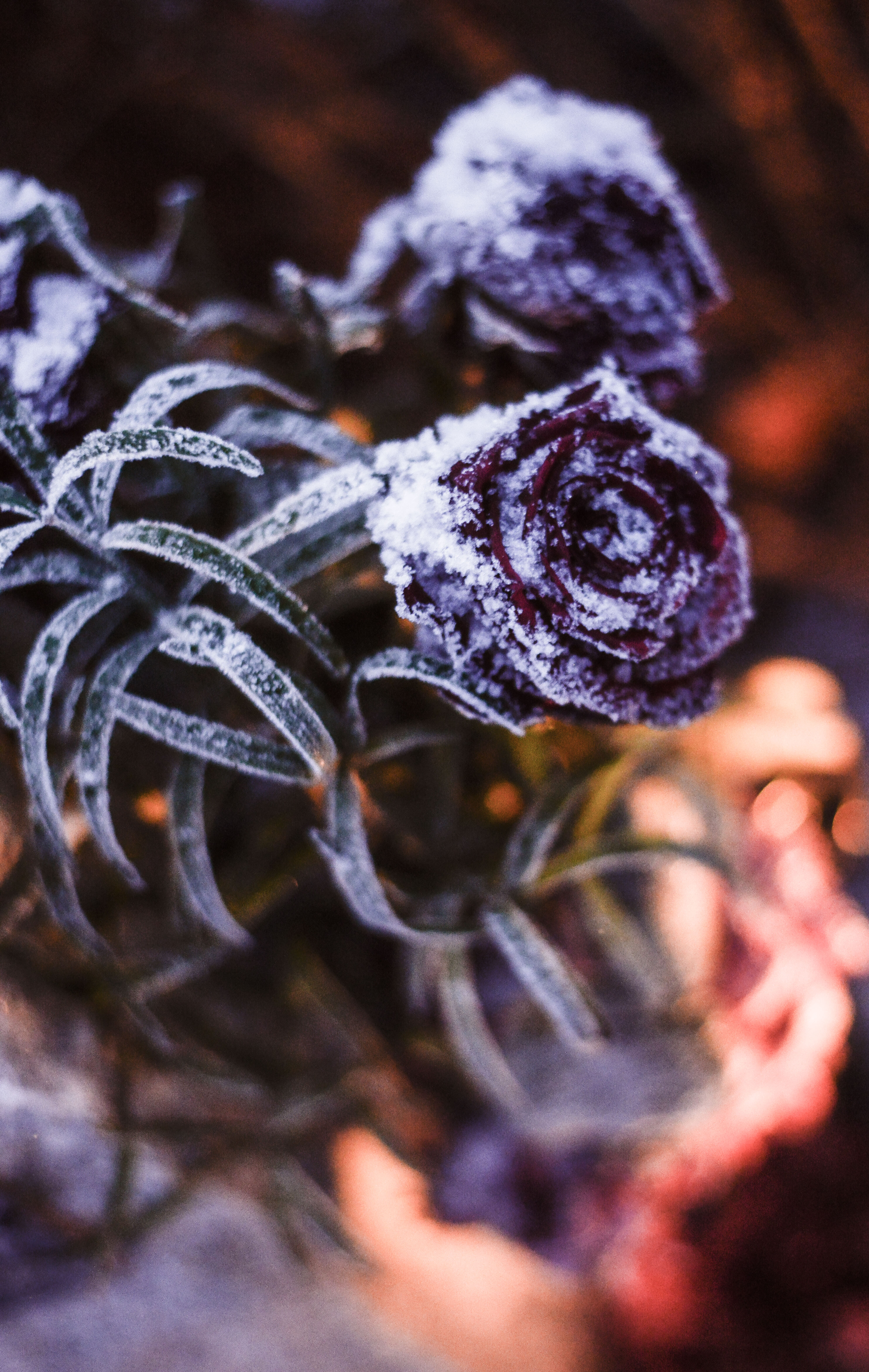Vi tittade till pappas grav förstås och tände ett ljus. Rosorna som mamma satt dit tidigare var magiska iklädda rimfrost och is.