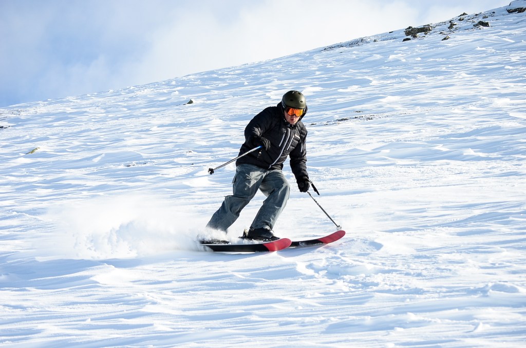 Vi drog iväg bortom pisterna för att få oss lite puderåkning, men det hade blåst en del och snön var hårdare än den var förra veckan, så det blev för svårt för mig som inte är lika vass som M. En fantastisk naturupplevelse blev det ändå så vi körde några varv och bara njöt av det även om jag mest kasade nedför bitvis 🙂
