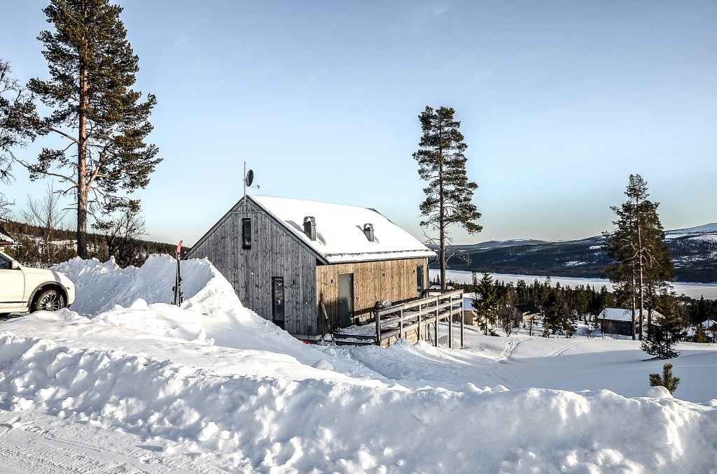 Fjällstugan i Lofsdalen inbäddad i fluffig snö