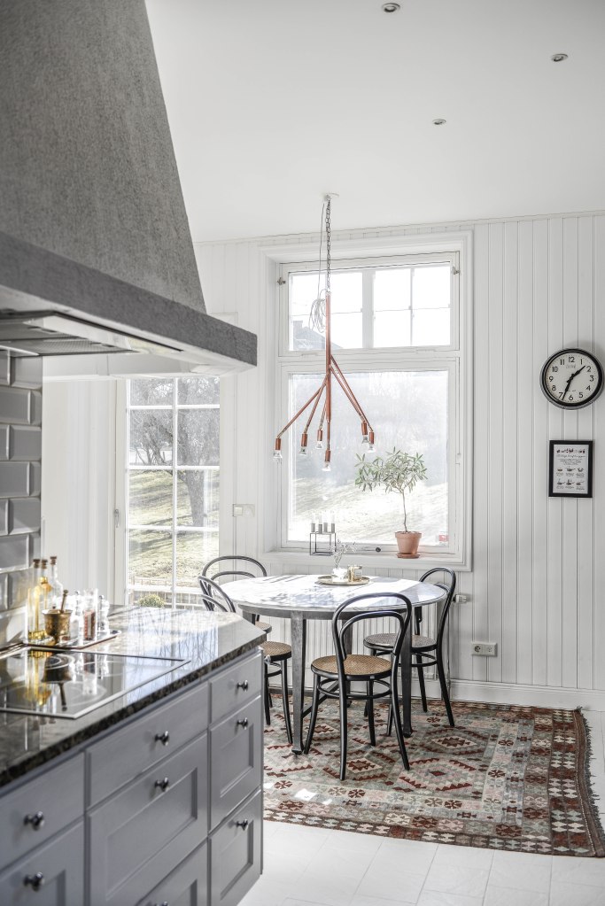 Den här sidan av köket är vit, den till höger är svart, men den syns inte i bild..