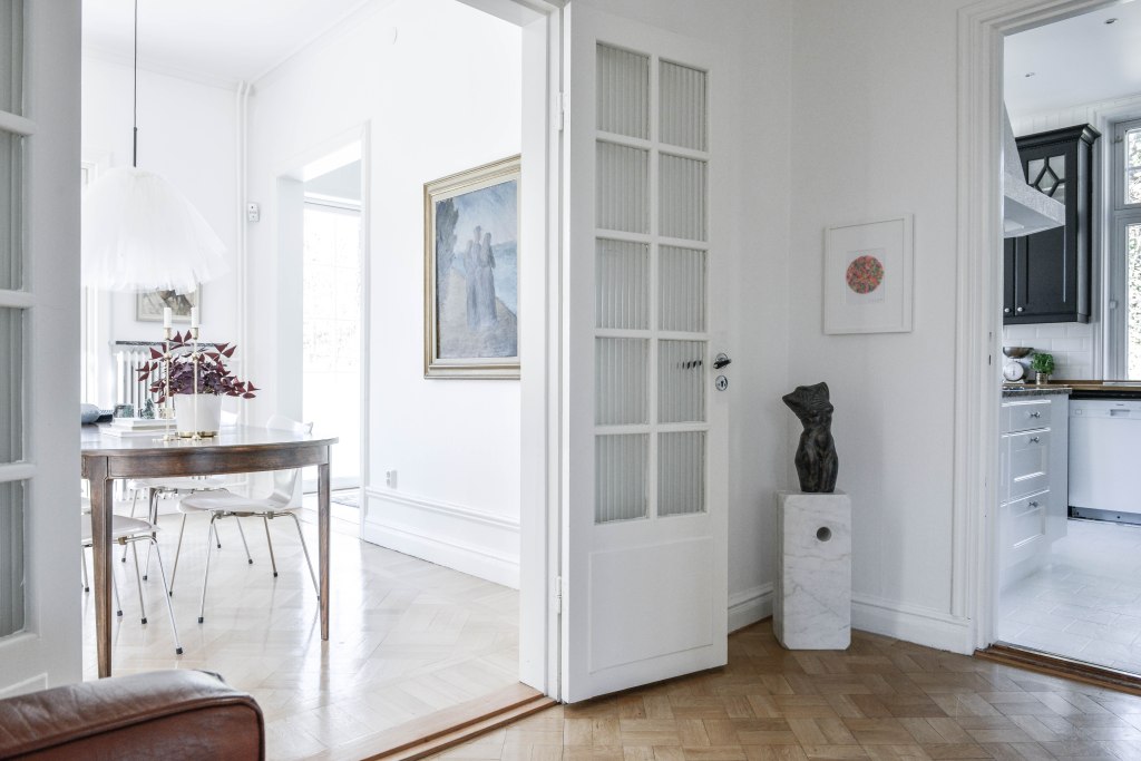 När vi precis hade köpt det här huset bestämde vi oss för att inreda det precis utifrån våra drömmar. Vi sa att det får ta tid, men vi ska inte köpa något bara för att, och det vi skulle köpa skulle vara prylar vi skulle behålla länge, typ livet ut. Saker med kvalitét. Ganska snart började vi handla. Vi köpte nytt och ropade in på auktion. Det var vansinnigt roligt och den ena ”dröm-möbeln” efter den andra mellanlandade i vårt förra hus, som då var sålt.
