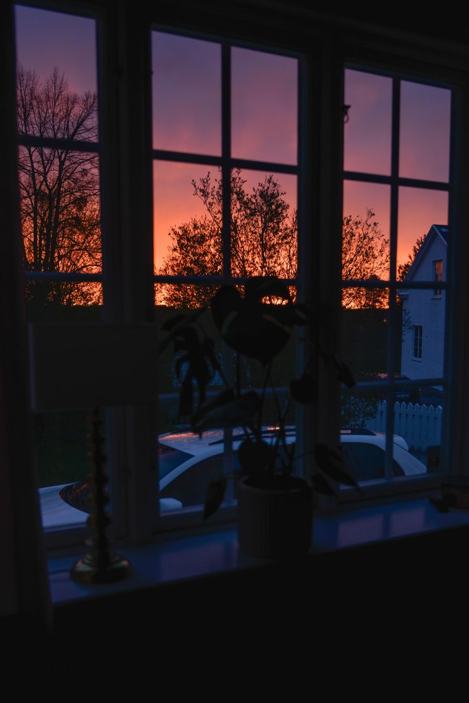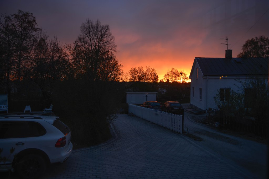 M och jag satt uppe hela natten och pratade och skrattade till solen var på väg upp (lillan var hos mormor så då passar vi på, hehe). Ett magiskt ljus över staden bortom våra grannar blev ett fint slut på en härlig kväll.