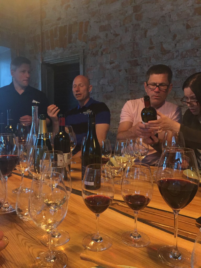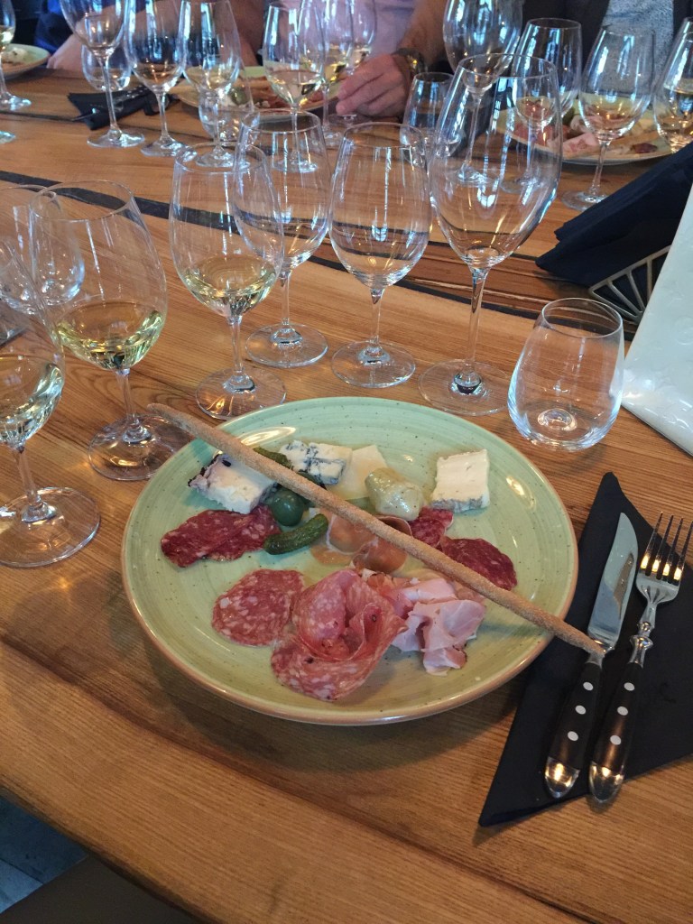 Vi var 11 personer och hade bokat ett separat ”vinprovningsrum”. 6 olika viner skulle provas under kvällen och till det fick vi också lite ost och charkisar. Hur mysigt som helst och kan helt klart rekommenderas. Garanterat inte sista gången vi provar viner där!!