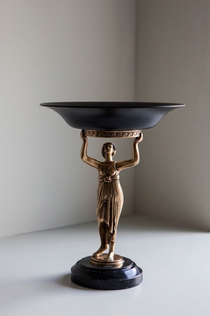 Urfin mässingsfigur med skål. Hur läcker som helst!