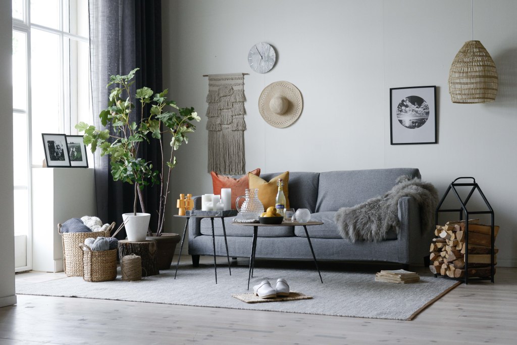 Vi gjorde ett Gotländskt sommarhus-ish! Jag som inte ens varit på Gotland… Ups! Helt otroligt vad samspelta vi var. På bara någon minut kom vi fram till vilken årstid det skulle vara och vart vi var. Sedan körde vi bara på, pratade knappt med varandra, utan sprang mest och hämtade saker som vi ställde i ordning. Det enda det blev en kort diskussion om, var om kuddarna skulle ha ”ett slag i mitten” eller vara mer fyrkantigt raka, hahaha! Jag förespråkar det första, vad tycker ni?